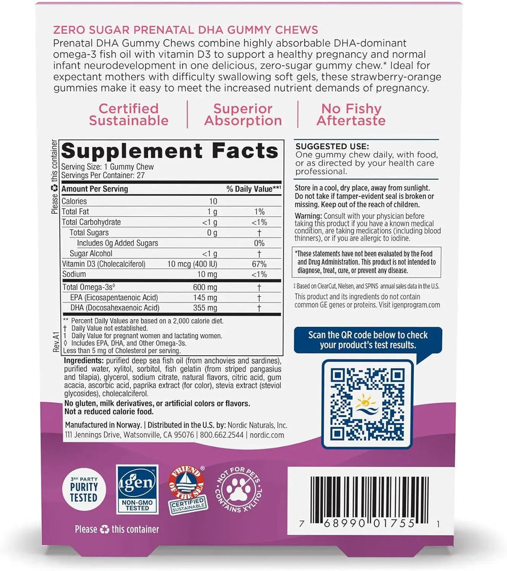 Nordic Naturals Zero Sugar DHA Prenatal Vitamin Gummies 27 Gomitas
