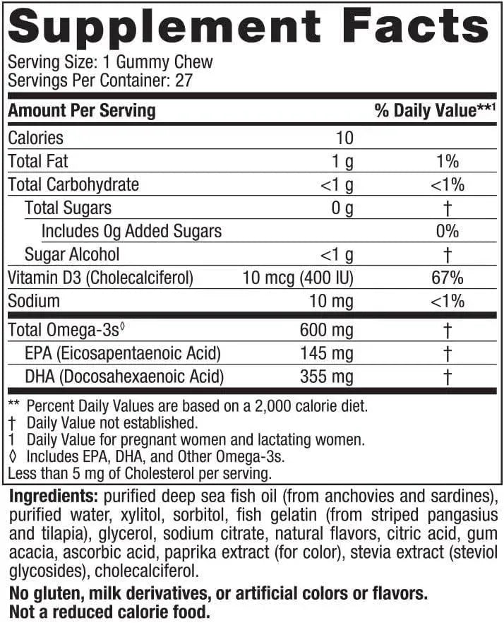 ¿POR QUÉ LAS GOMAS MASTICABLES PRENATALES? Con 600 mg de omega-3 total más 400 UI de vitamina D3 por gomita, las gomitas masticables prenatales sin azúcar brindan a las futuras madres y a sus bebés nutrientes clave para el desarrollo del cerebro y el sistema nervioso del bebé en cada deliciosa porción.