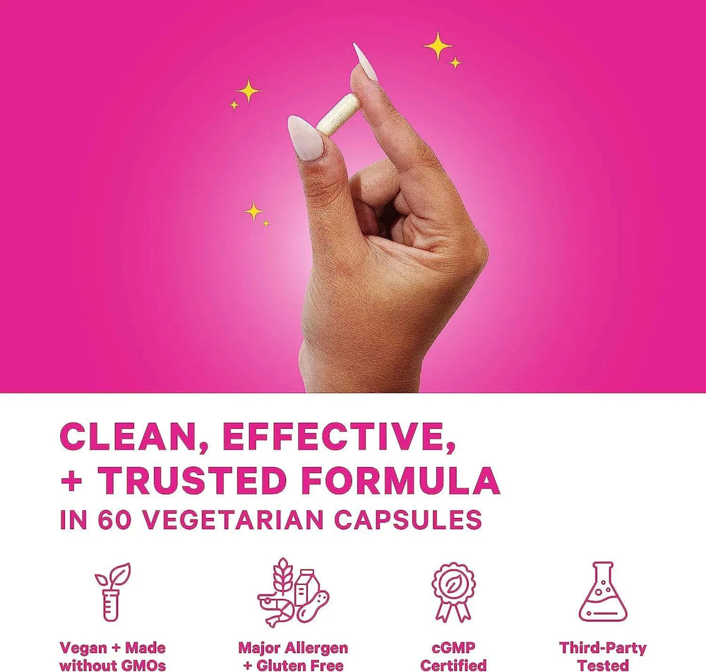 Toma dos cápsulas pequeñas como parte de tu ritual diario de embarazo. Cada botella contiene 60 cápsulas para un suministro de 1 mes.