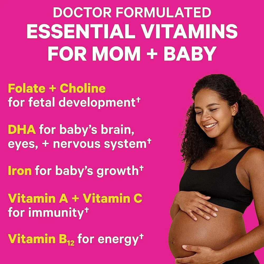 Los prenatales no son solo vitaminas para las mujeres, el bebé también obtiene los beneficios. El folato apoya la formación de glóbulos rojos y ayuda a prevenir defectos de nacimiento importantes; es tan esencial que los obstetras y ginecólogos recomiendan un suplemento de folato para las mujeres que intentan concebir. DHA es esencial para el desarrollo del cerebro y los ojos del bebé; El hierro ayuda a suministrar oxígeno a su cuerpo (¡y a su bebé!); Las vitaminas del complejo B apoyan el desarrollo del cerebro fetal y la energía de la madre.