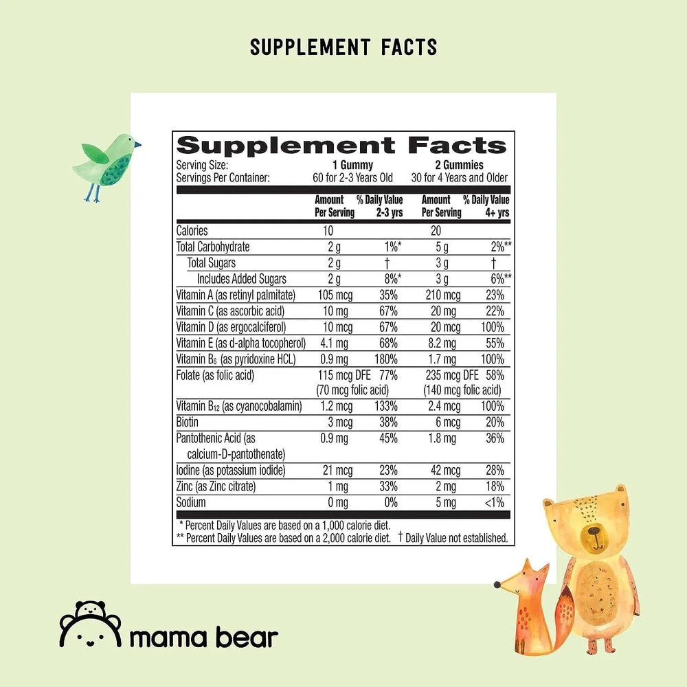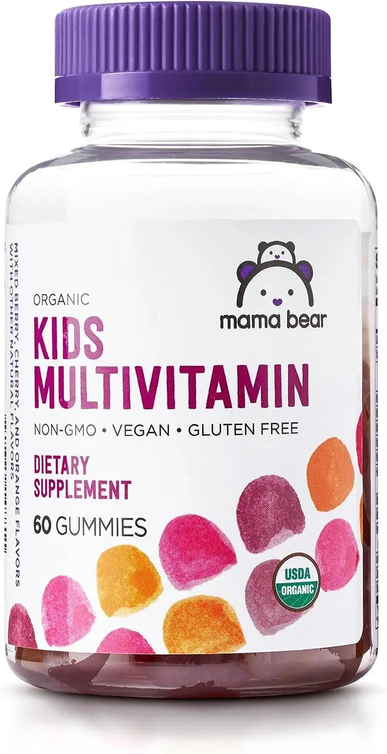EN LA CAJA: Botella de 60 unidades de gomitas multivitamínicas orgánicas para niños Mama Bear; Suministro para 1 mes (2 gomitas por porción)