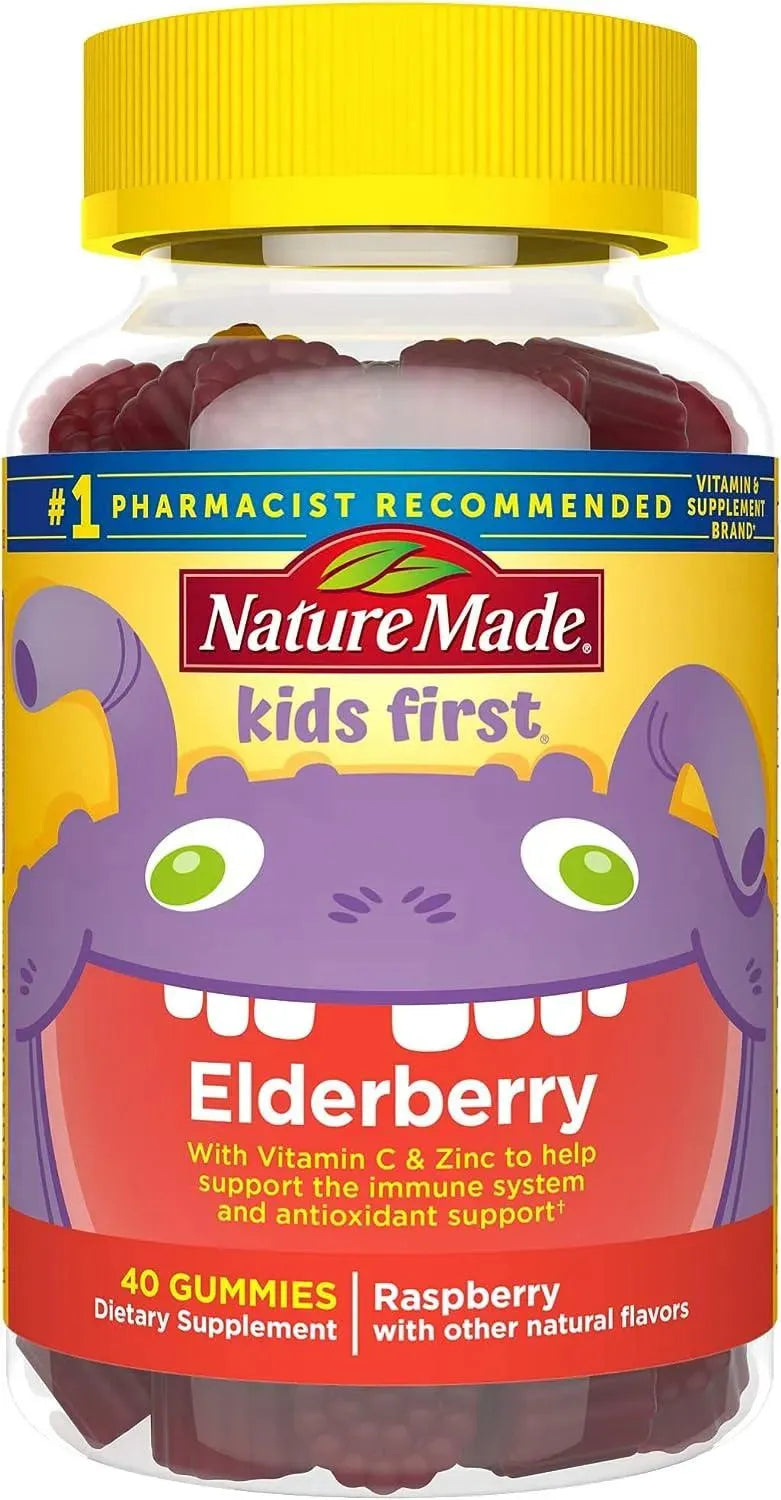 Suplemento antioxidante y de apoyo inmunológico: contiene una botella de 40 unidades de Nature Made Kids First Elderberry con vitamina C y gomitas de zinc.