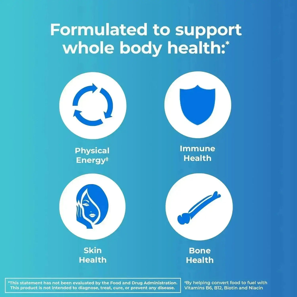Formuladas para apoyar la salud ósea, la salud inmunológica y la energía física al ayudar a convertir los alimentos en combustible en una práctica forma de gomitas