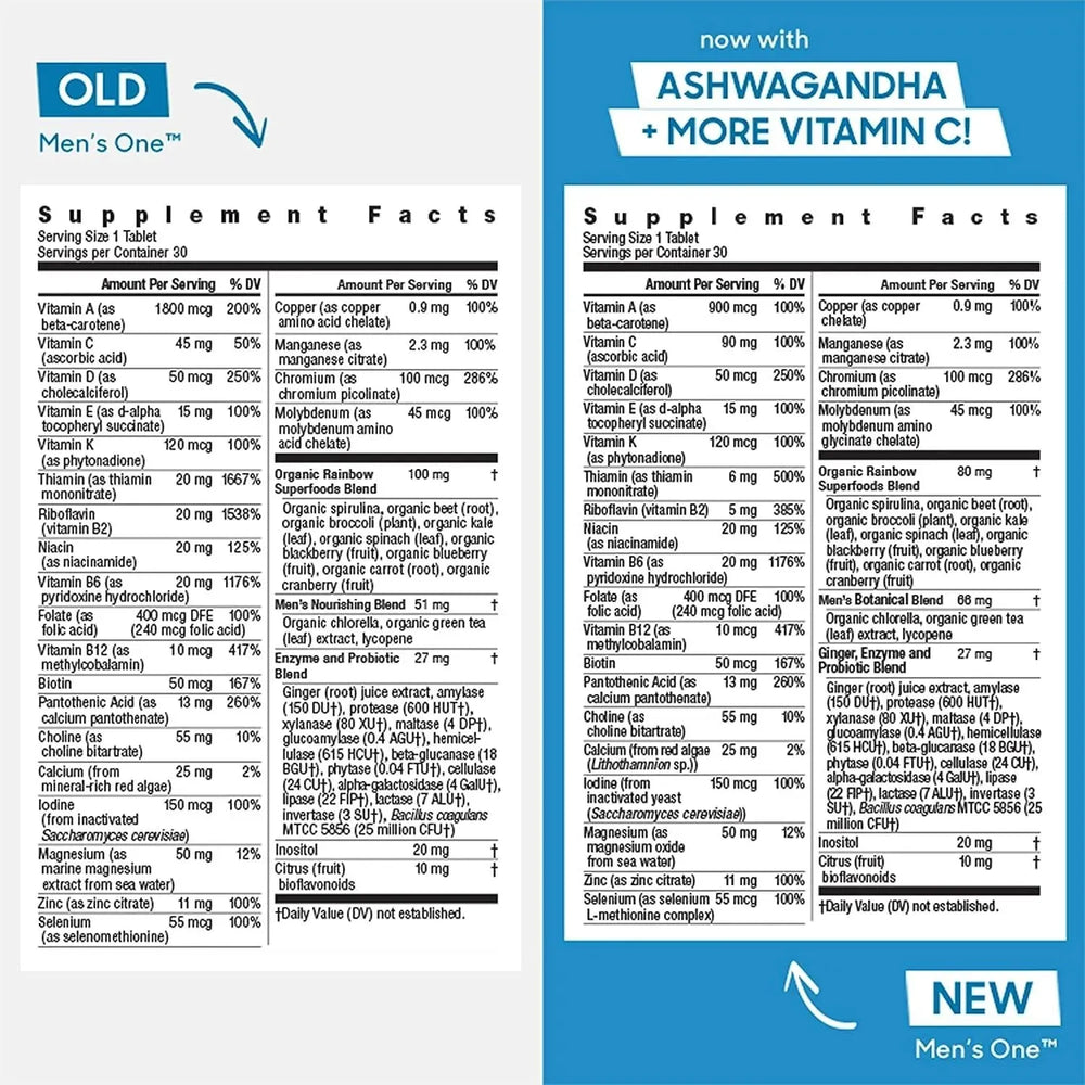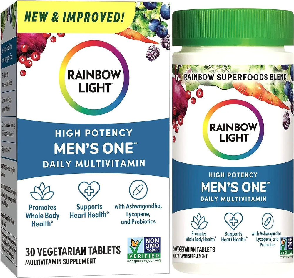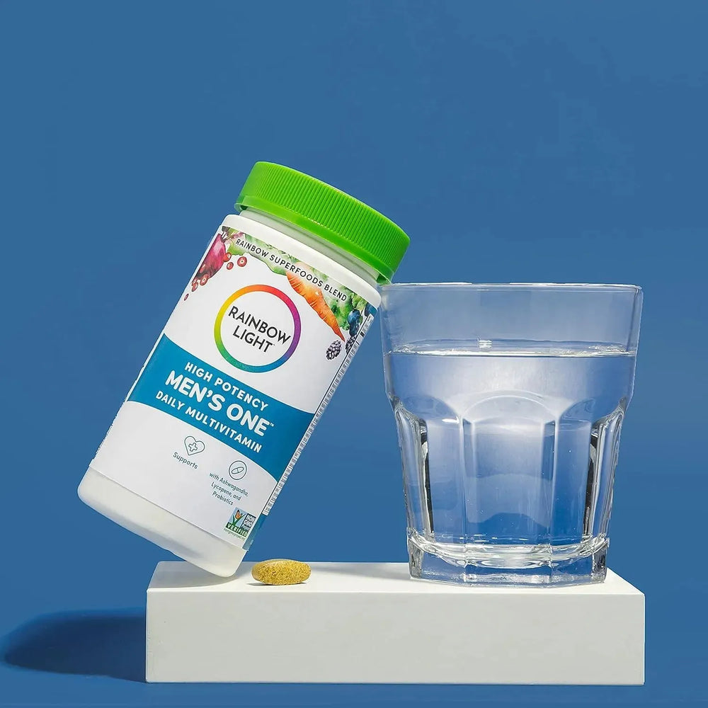 MULTIVITAMINA DE ALTA POTENCIA PARA HOMBRES: La multivitamina diaria Rainbow Light One de alta potencia para hombres está formulada con 100 % o más del valor diario de 20 vitaminas y minerales (el paquete puede variar).