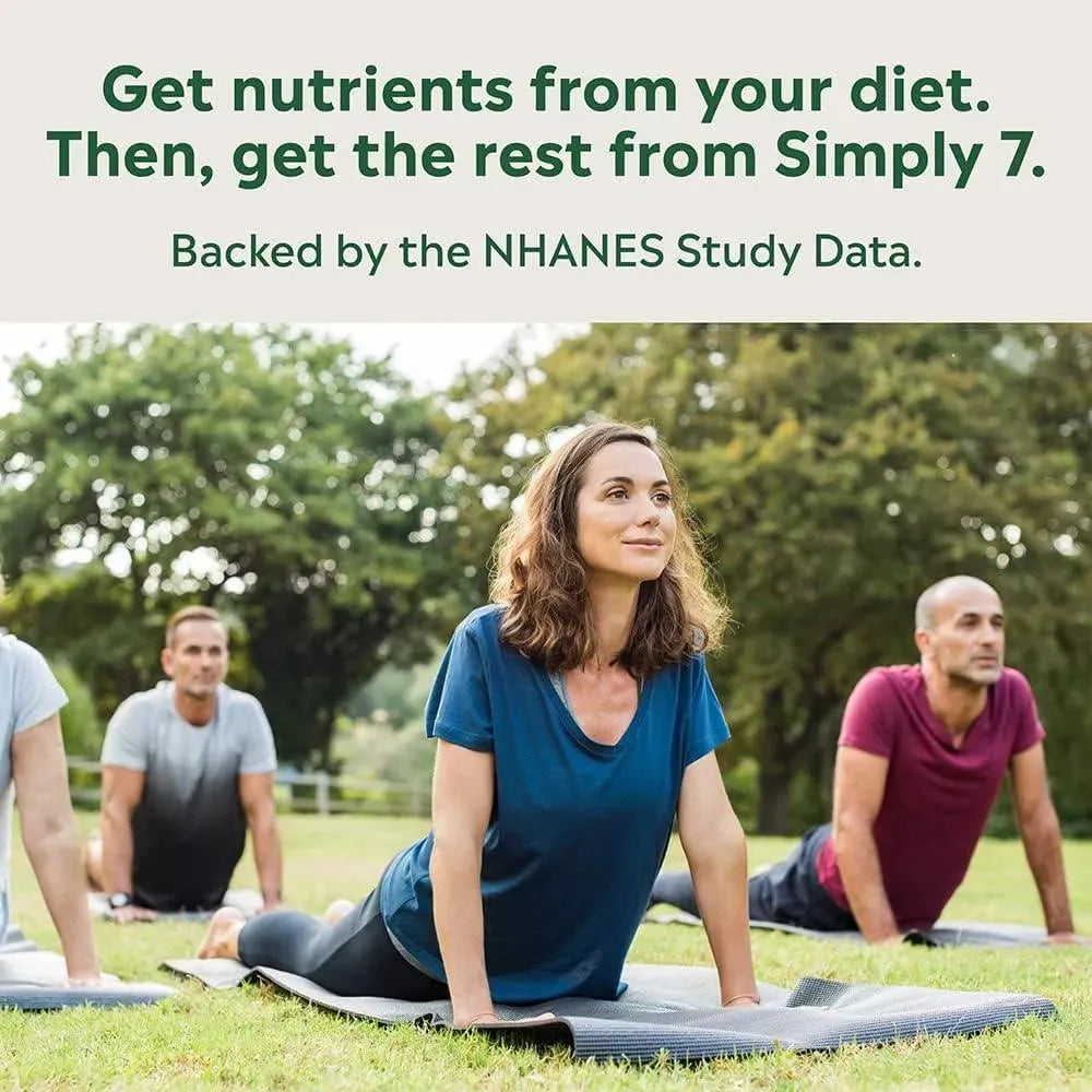 • SIMPLEMENTE LO QUE NECESITAS: ¿Jugar con múltiples vitaminas diariamente? Hemos creado Simply 7 para que usted no tenga que hacerlo. Simply 7 incluye los 7 nutrientes principales que los adultos faltan en sus dietas para que puedas sentirte lo mejor posible. Complementar tu dieta con estos nutrientes esenciales te ayudará a llegar al 100% del valor diario recomendado de cada uno.