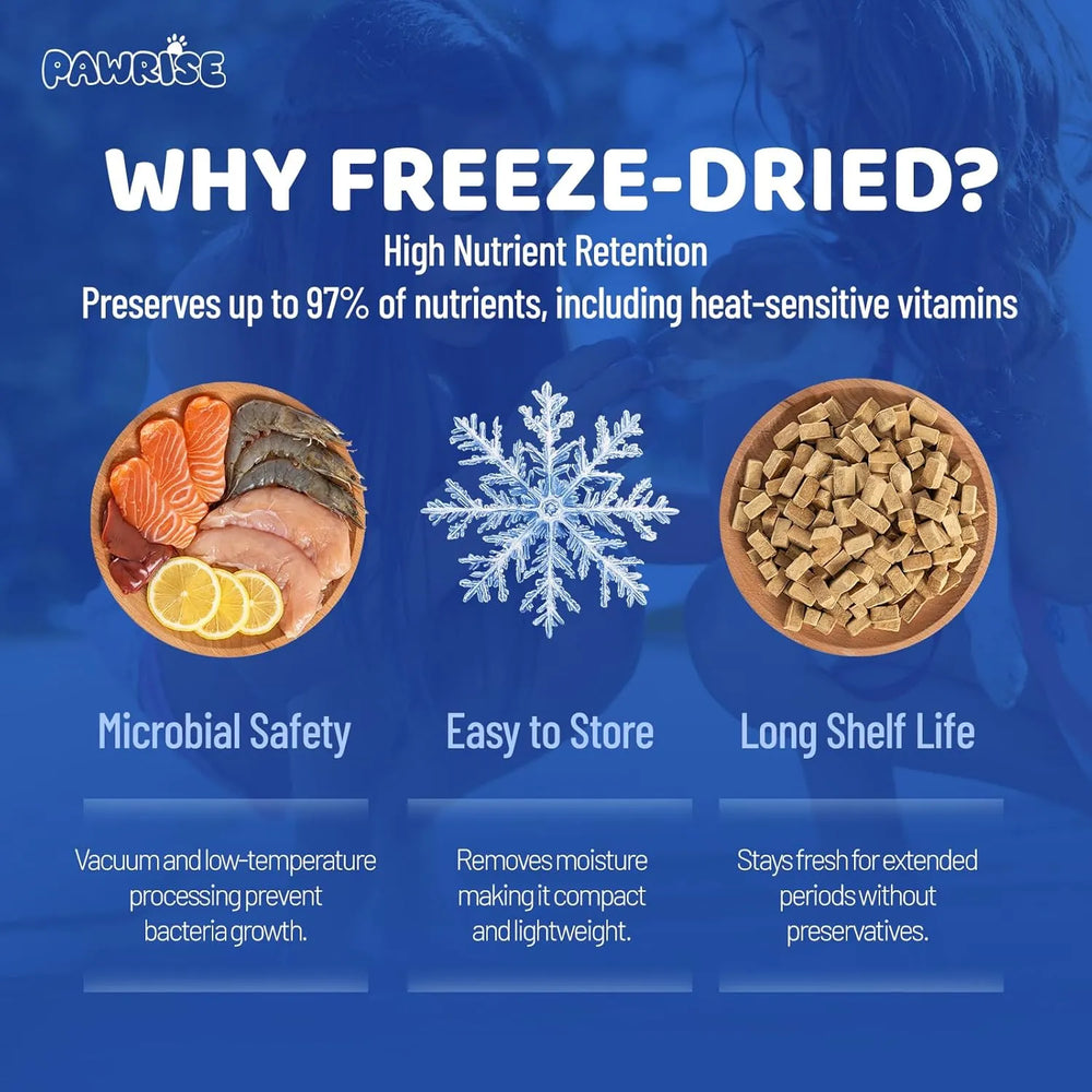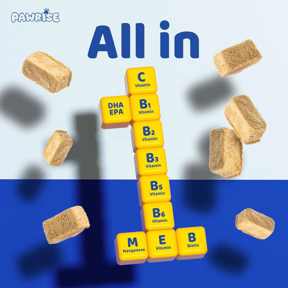 Beneficios integrales para la salud: Estas golosinas de alta calidad están específicamente formuladas para brindarle a su perro un apoyo nutricional completo. Cada golosina masticable contiene vitaminas esenciales para el sistema inmunitario, aceite de pescado para una piel sana y un pelaje brillante, glucosamina para la salud articular y probióticos para la salud digestiva. El proceso de liofilización garantiza la máxima retención de nutrientes, lo que las hace altamente efectivas y deliciosas.