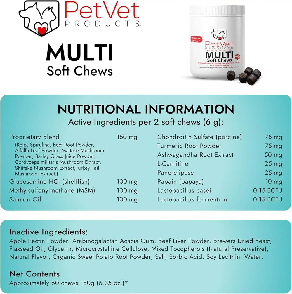 Pet Vet Multi Soft Chews for Dogs 60 Masticables