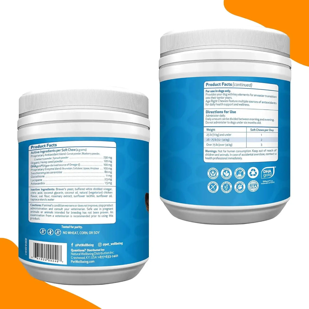 Pet Wellbeing Age Right Chewies for Dogs in their Prime & Senior Years 90 Masticables