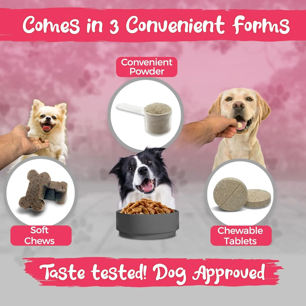 Formatos opcionales: Vital Planet Vital Dog está diseñado para perros de todas las razas, edades y tamaños, y viene en tres prácticas presentaciones, según las preferencias de su perro. Nuestro polvo con sabor a carne se puede espolvorear fácilmente sobre alimento seco o húmedo. Nuestras tabletas masticables blandas con sabor a tocino y las tabletas masticables con sabor a carne también son una opción popular: un premio que a nuestros perros les encanta. Cada formato ha sido probado repetidamente en clínicas veterinarias para garantizar su palatabilidad y una alta aceptación.