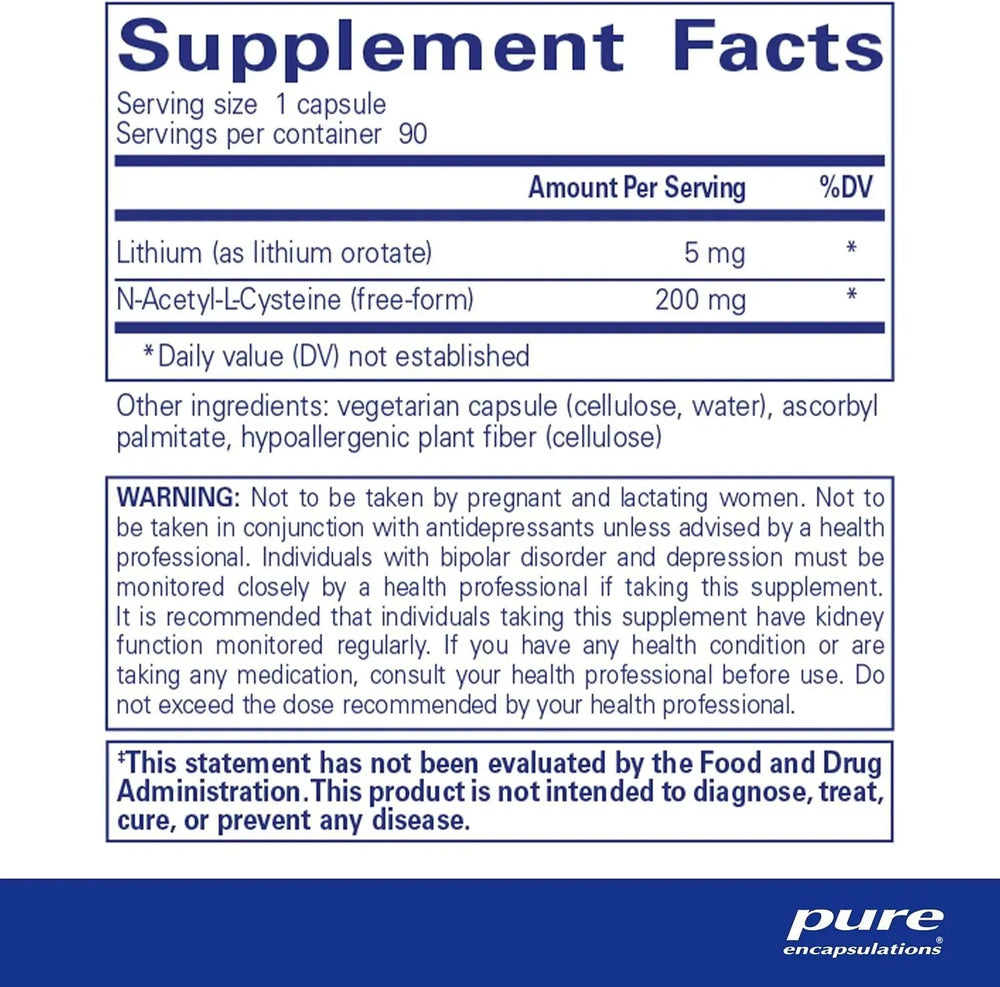 Pure Encapsulations Lithium Orotate 5Mg. 90 Capsulas