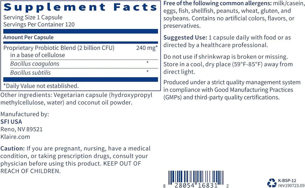 Klaire Labs Biospora Probiotic 120 Capsulas