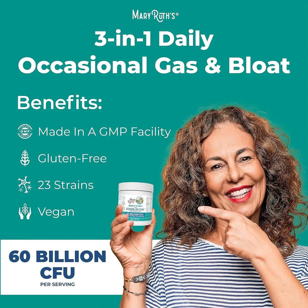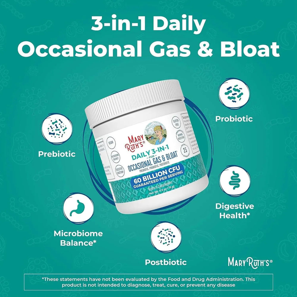 MaryRuth's 3-in-1 Gas & Bloat Probiotics Powder 15Gr.