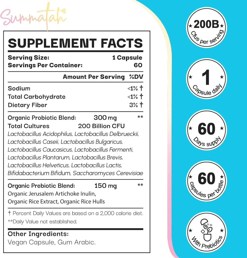 Summatah 200 Billion CFU Probiotics 60 Capsulas