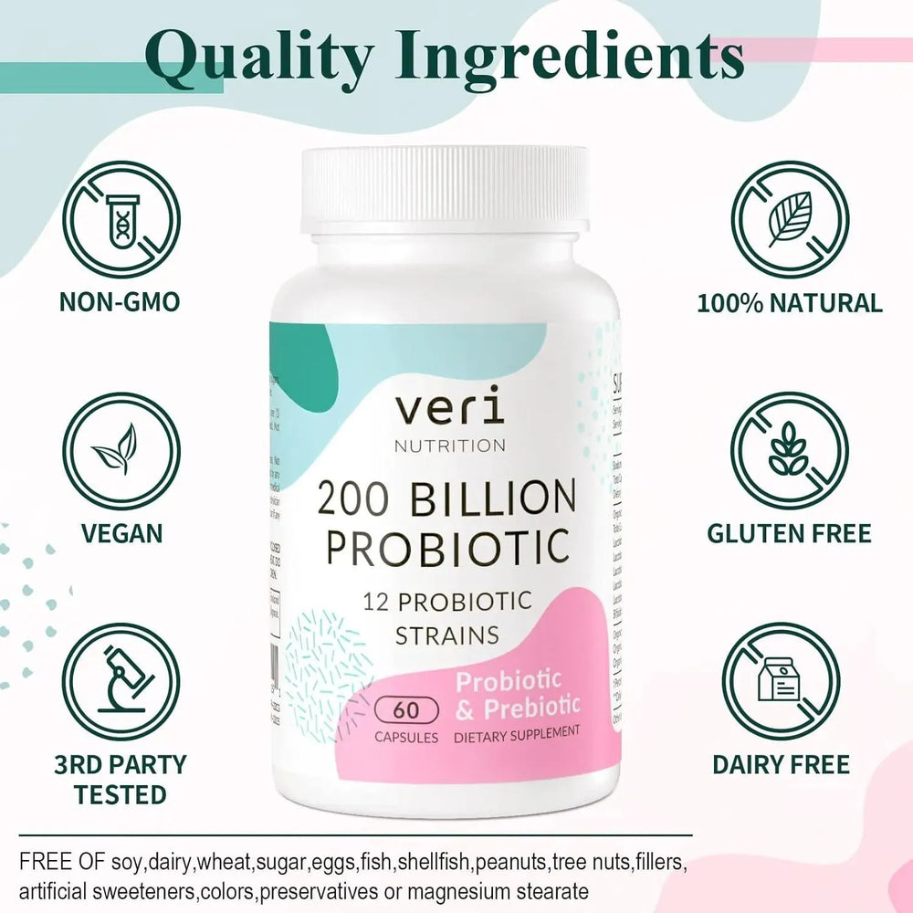 Veri Nutrition 200 Billion CFUs Probiotics 120 Capsulas