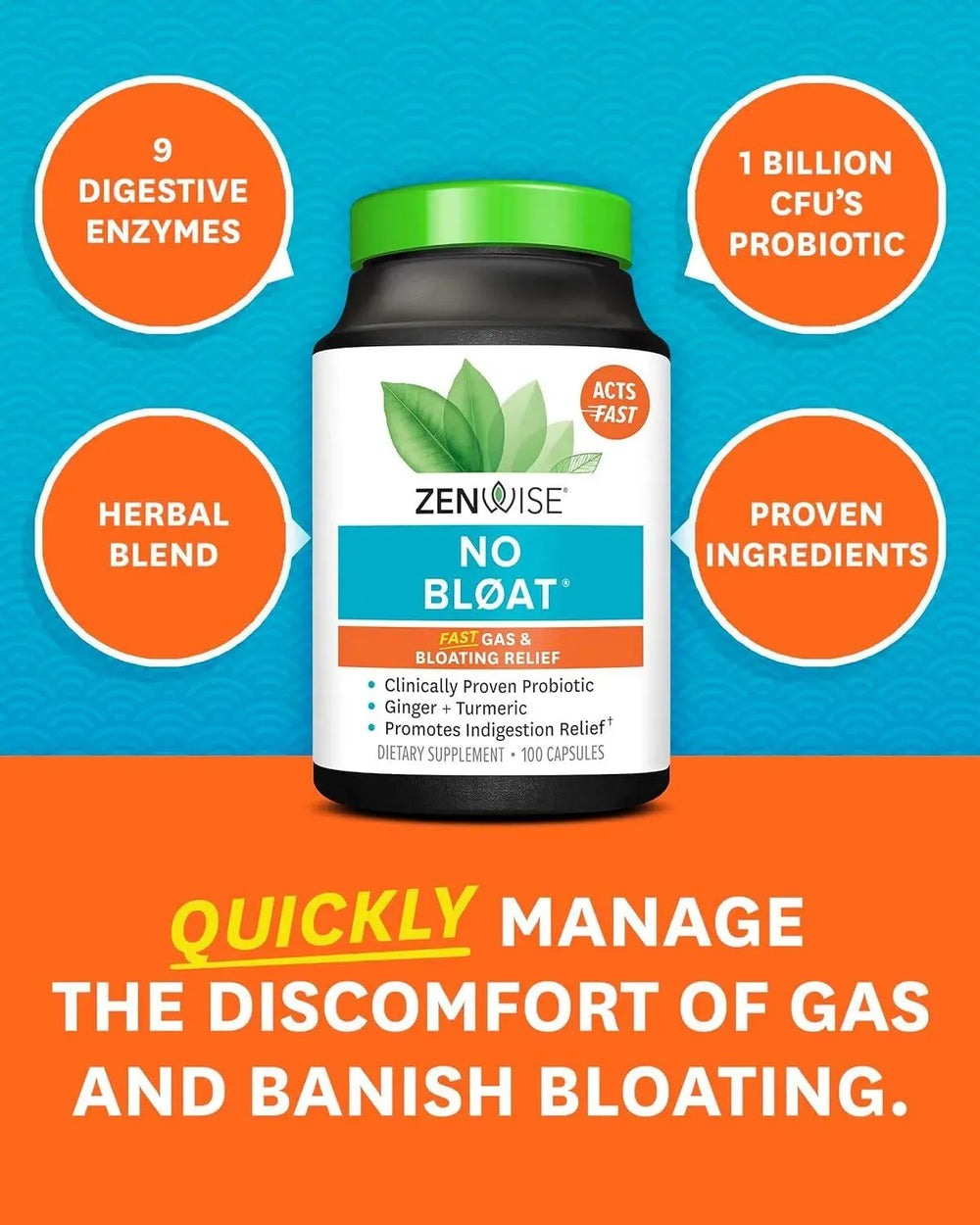 • Suministro para 50 porciones: Incluye 1 (100 unidades) Zenwise NO BLØAT. Sugerimos tomar 2 cápsulas al día después de una comida para un apoyo óptimo.