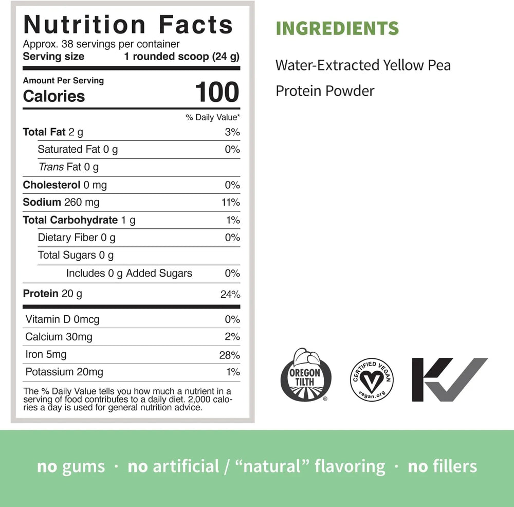 POLVO DE PROTEÍNA VEGETAL ORGÁNICA PURA: polvo de proteína de guisante orgánica de origen vegetal sin edulcorantes artificiales de guisantes amarillos norteamericanos 100 % puros.