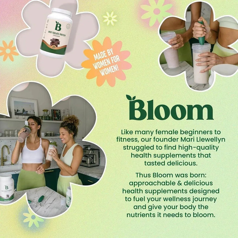 • Detrás de Bloom: Al igual que muchos principiantes en fitness, la fundadora de Bloom, Mari, luchó por encontrar suplementos con ingredientes de alta calidad que tuvieran un sabor delicioso. Por lo tanto, nació Bloom: complementos accesibles y deliciosos diseñados para impulsar su viaje de acondicionamiento físico y brindarle a su cuerpo los nutrientes que necesita para florecer.