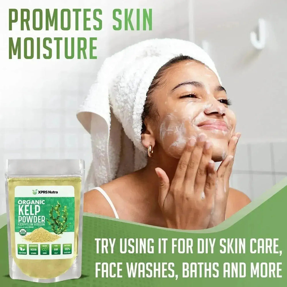 Humectación de la piel: las algas marinas y el polvo de algas marinas son ricos en minerales y antioxidantes, y se sabe que suavizan e hidratan la piel al retener la humedad. Prepare sus propias mascarillas faciales y soluciones para el cuidado de la piel en casa usando nuestro polvo de algas marinas orgánicas, espirulina y algas marinas. Este polvo de algas marinas para la piel es soluble en agua y se mezcla fácilmente.