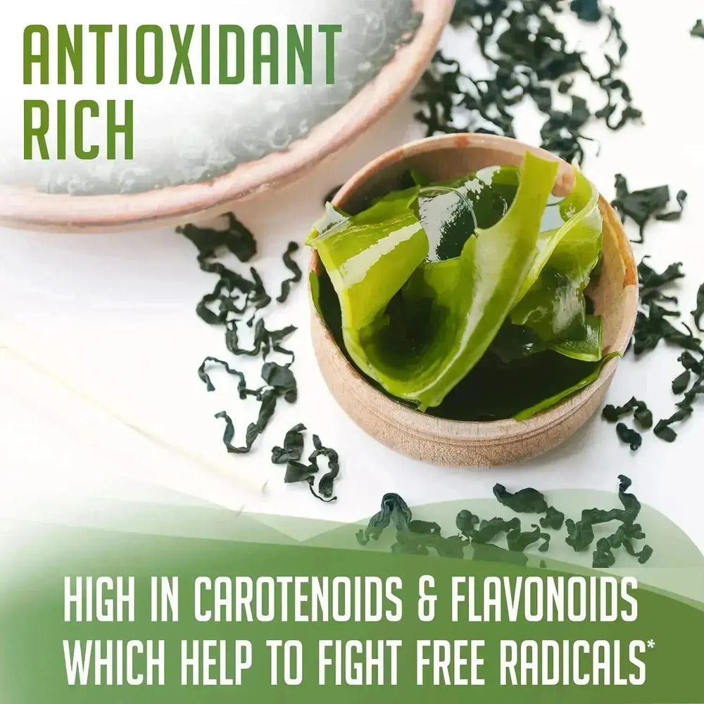 Equilibre su dieta: el polvo de algas marinas contiene yodo natural, que puede ayudar a mantener una dieta equilibrada cuando se incorpora a un estilo de vida nutritivo. Nuestro polvo de algas marinas de grado alimenticio es bajo en calorías, sin azúcar y rico en fibra. Elija entre los tamaños de bolsa de 4 oz, 8 oz y 16 oz y disfrute de sus algas marinas. ¡Ideal como polvo de algas marinas para humanos o polvo de algas marinas para perros!