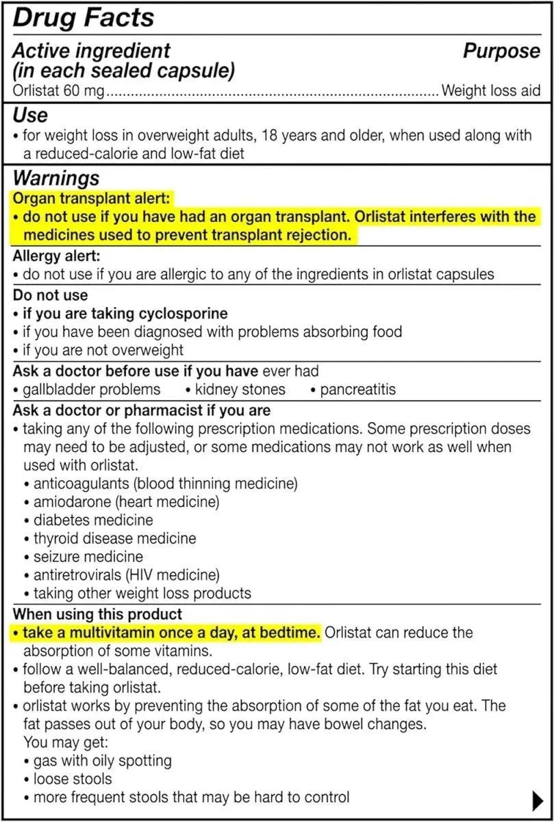 • El suplemento para bajar de peso alli actúa en el tracto digestivo y se absorbe mínimamente en el torrente sanguíneo, por lo que no tiene efectos directos sobre el sistema cardiovascular o nervioso central.