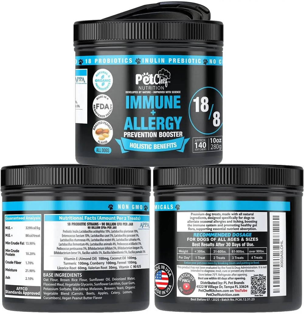Hecho en EE. UU. + Nutricionista canino: Nuestros probióticos para perros con alergias y picazón están formulados científicamente. Premios seguros para perros con alergias que cumplen con los más altos estándares de calidad.