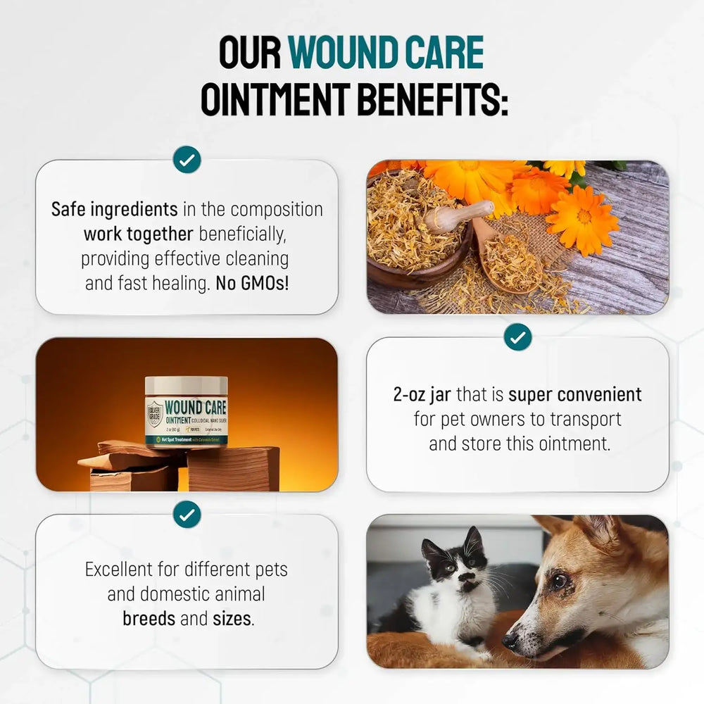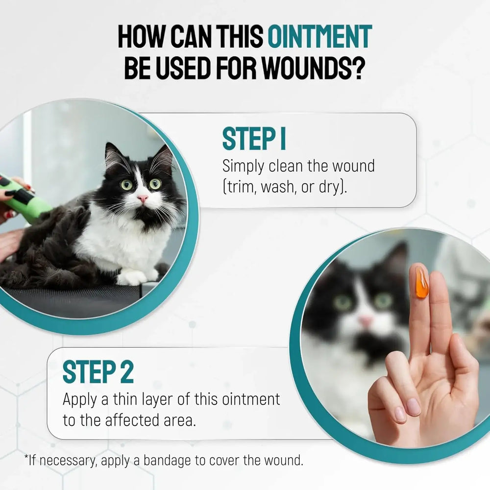 • Alivio para la picazón en la piel de perros y gatos: Nuestro ungüento para el cuidado de heridas puede ayudar con heridas, sarpullidos, cortes, rasguños, heridas quirúrgicas, quemaduras, picazón dulce, pudrición de la lluvia, picaduras de insectos, abrasiones, llagas e irritaciones.