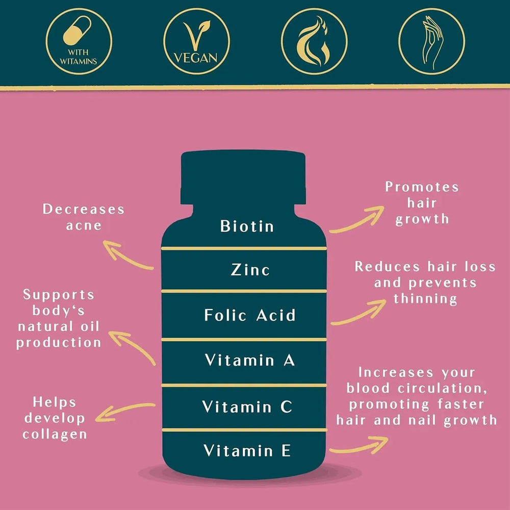 LLENO DE VITAMINAS: siéntase bella y respalde su bienestar con la mezcla combinada de biotina y diferentes vitaminas, como vitamina A, C, E, B5, B6, B9, que pueden ayudar a alimentar a su cuerpo con los nutrientes vitales para su cabello, piel y las uñas necesitan.