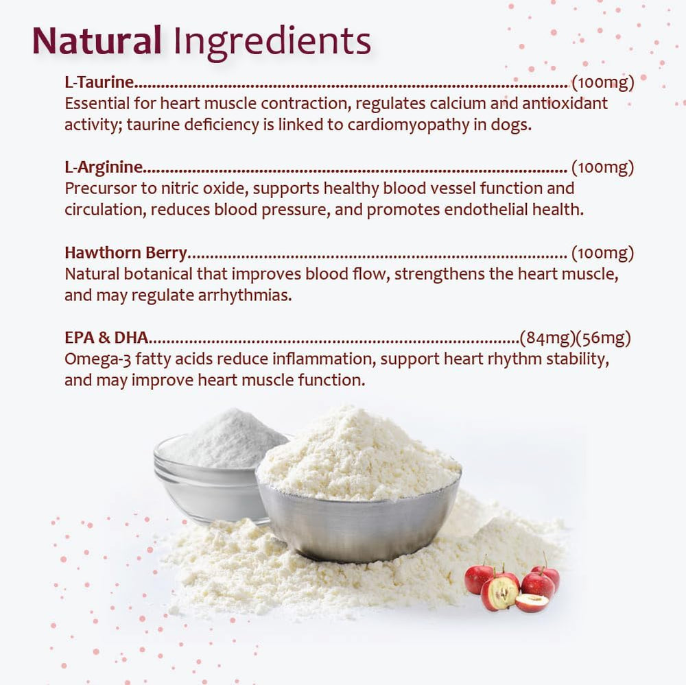 APOYO PARA LA SALUD CARDÍACA: Formulado con L-Taurina, L-Carnitina y Coenzima Q10 para promover una función cardíaca óptima y mantener la fuerza del músculo cardíaco en perros.