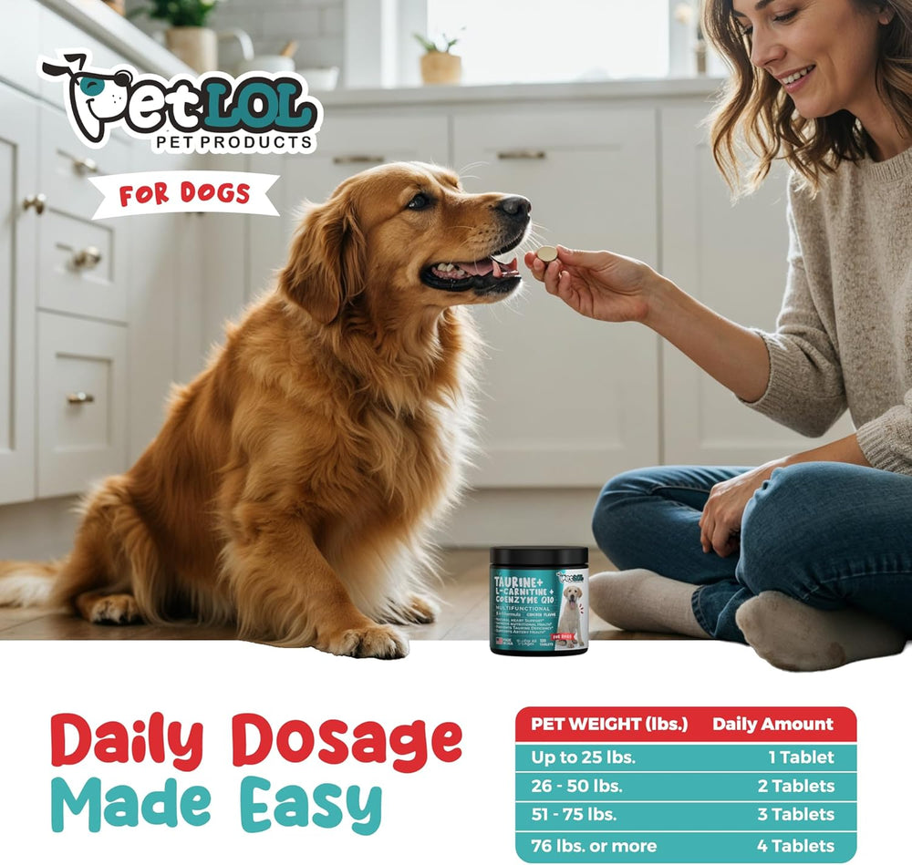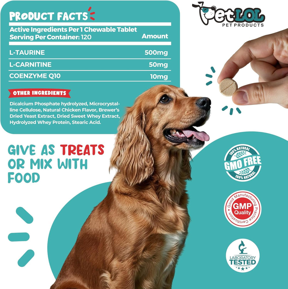 PET LOL Taurine for Dogs with L-Carnitine and Coenzyme Q10 120 Masticables