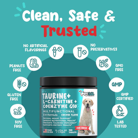 PET LOL Taurine for Dogs with L-Carnitine and Coenzyme Q10 120 Masticables
