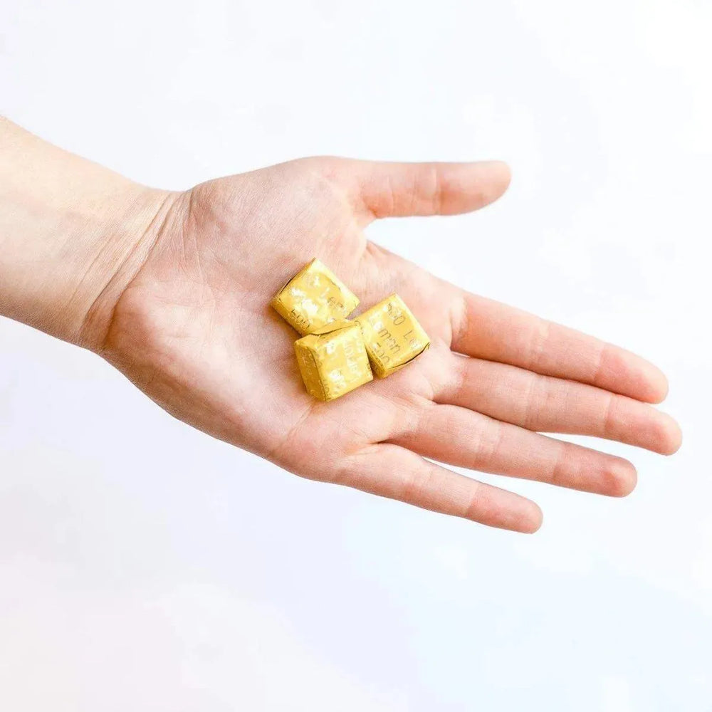 • Empaquetado convenientemente: cada masticable está envuelto individualmente para que pueda llevarlos donde quiera que vaya.