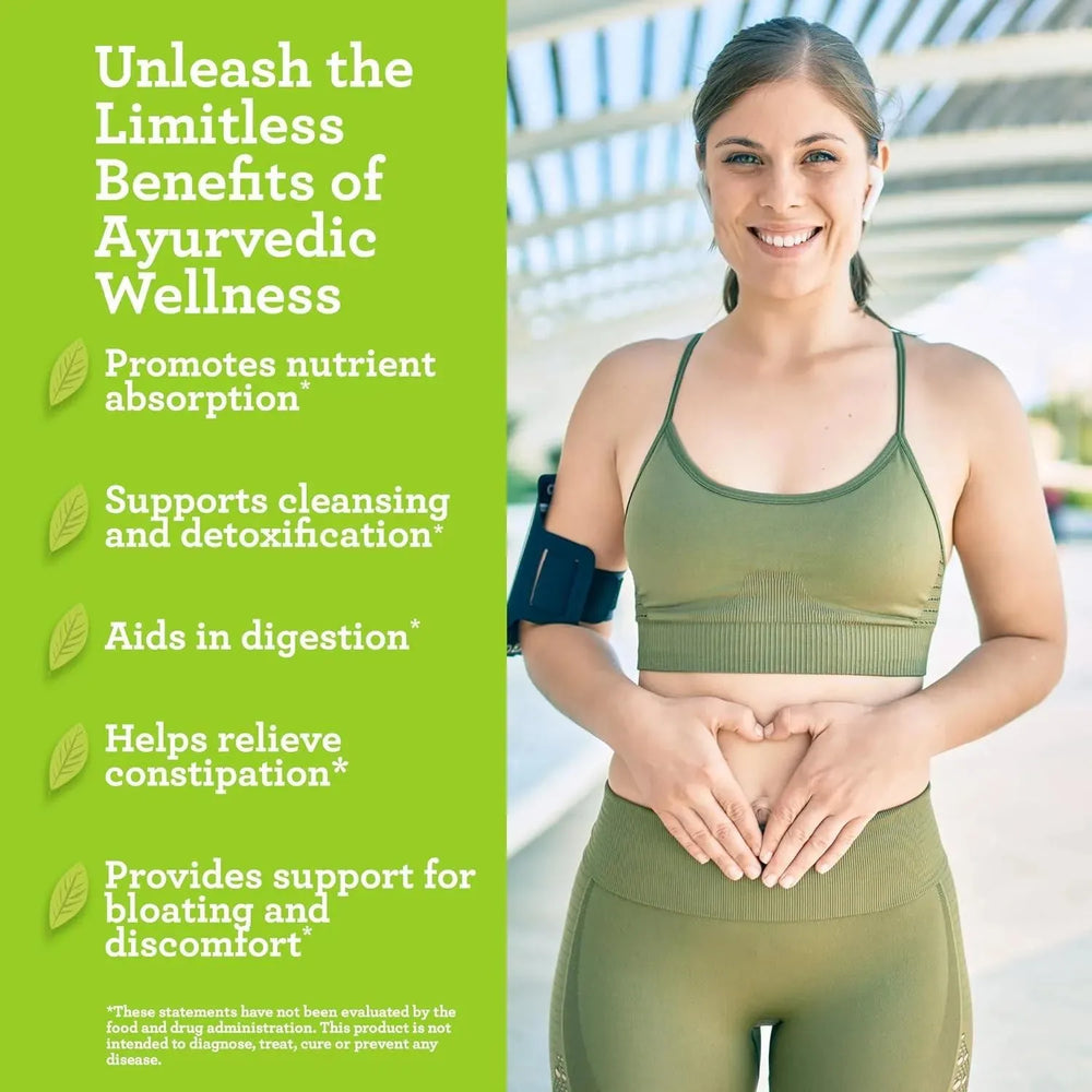 EXTRACTOS DE HIERBAS CALMANTES: Este suplemento dietético también incorpora extractos de hierbas calmantes conocidos por sus beneficios digestivos. Ingredientes como amla, haritaki y bibhitaki se han utilizado tradicionalmente para ayudar a aliviar las molestias digestivas, ayudar a reducir los gases y ayudar a calmar la inflamación en el tracto digestivo junto con sus propiedades antioxidantes.