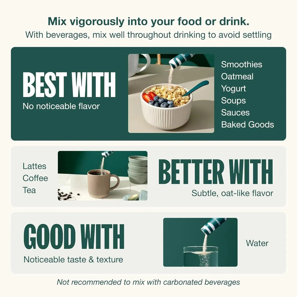 SIN SABOR = POSIBILIDADES ILIMITADAS: Simplemente vierta esta mezcla prebiótica en cualquiera de sus alimentos o bebidas favoritas para obtener los beneficios del equilibrio intestinal. Mézclalo con café, agua, sopas, avena o cualquier otra cosa sin cambiar la textura ni el sabor.