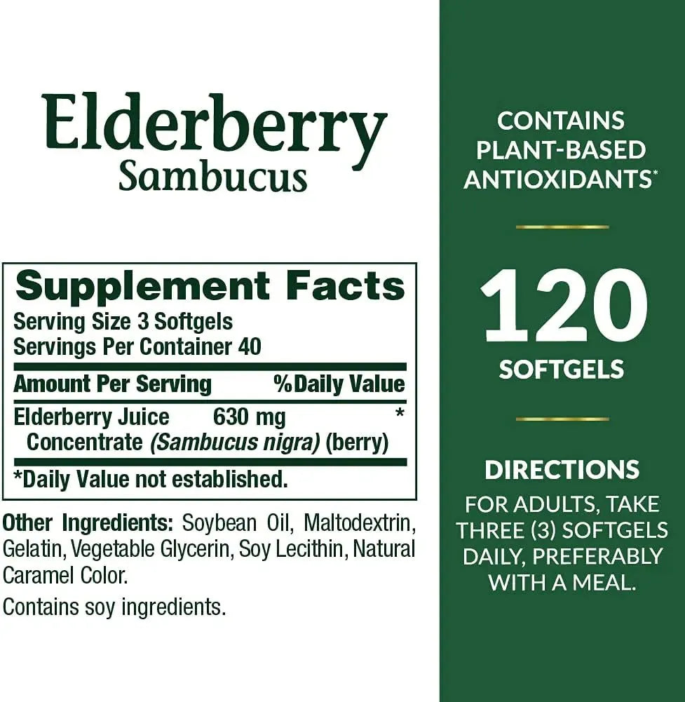 Nature's Bounty Sambucus Elderberry 630Mg. 120 Capsulas Blandas