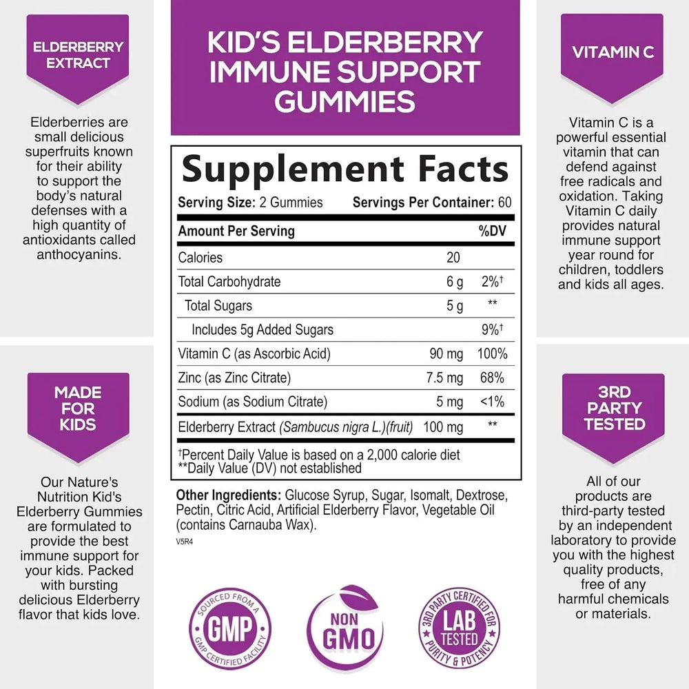 Nature's Nutrition Sambucus Elderberry Immune Gummies for Kids 120 Gomitas