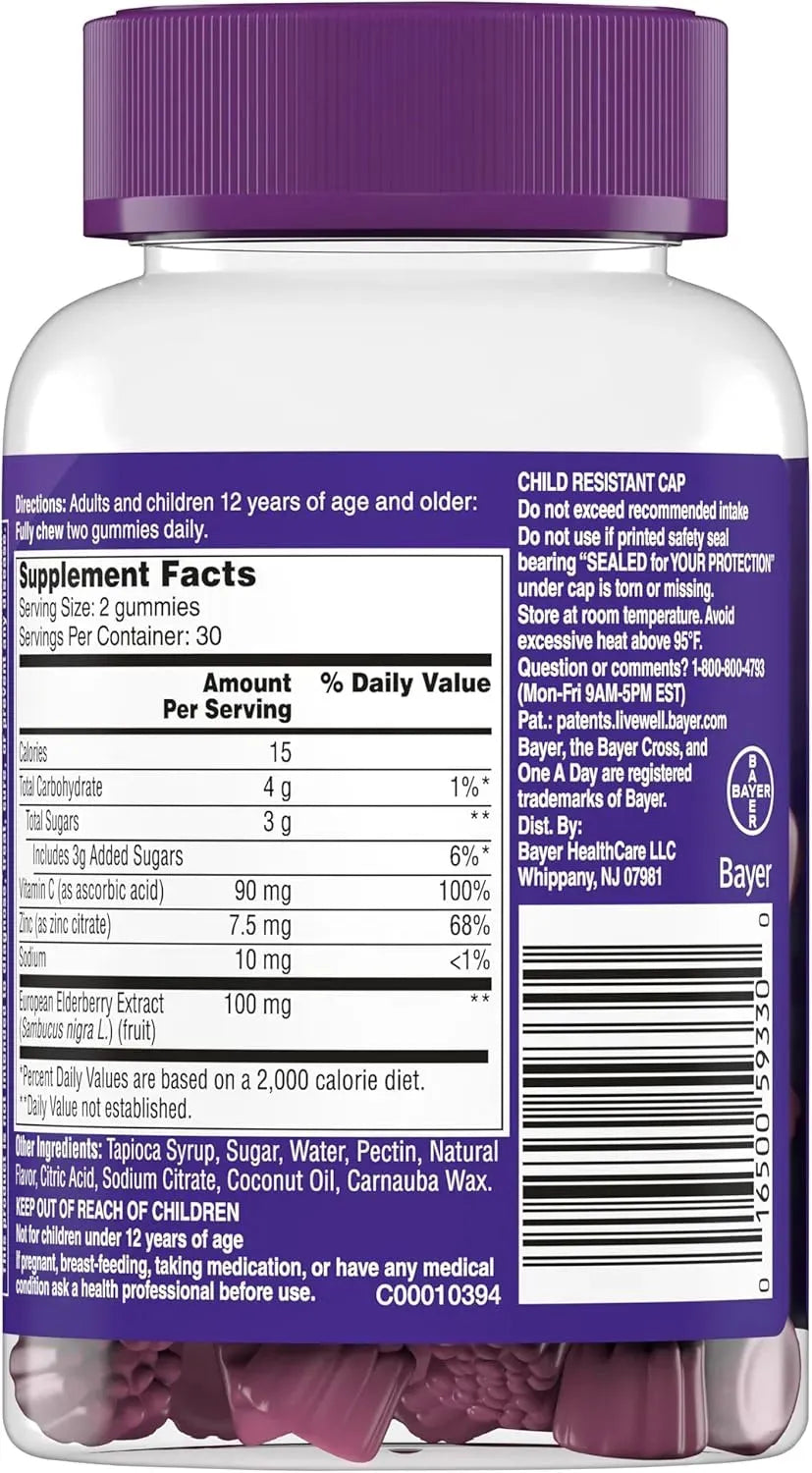 One A Day Elderberry Gummies with Immunity Support from Vitamin C and Zinc 60 Gomitas