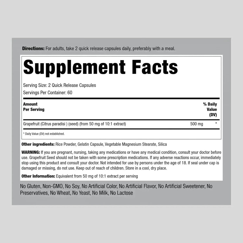 Piping Rock Grapefruit Seed Extract 500Mg. 120 Capsulas