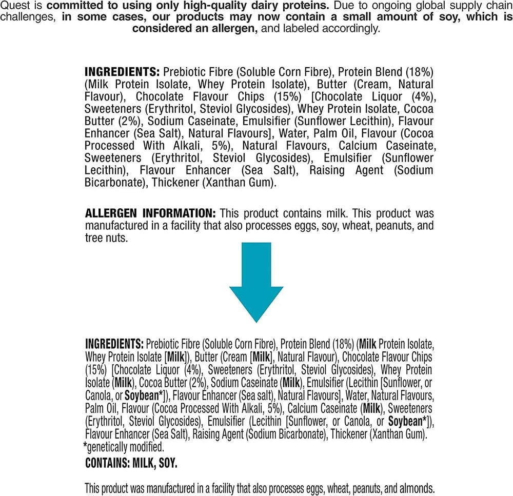 PROTEÍNAS COMPLETAS DESENVUELVA: Las galletas de proteína Quest Double Chocolate Chip están hechas con proteínas completas a base de lácteos para proporcionarle 9 aminoácidos esenciales.