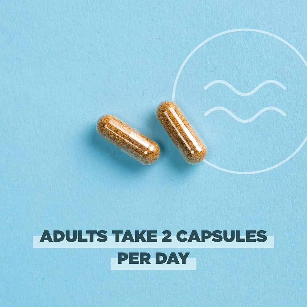 Tome dos cápsulas diarias de nuestra combinación inédita de prebióticos, posbióticos y 30 cepas probióticas.