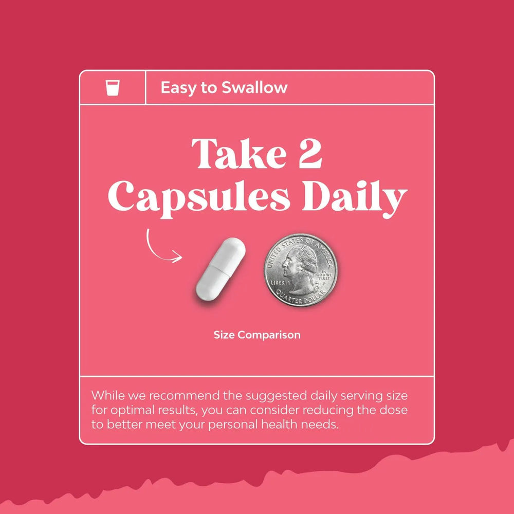 MODO DE EMPLEO Y ADVERTENCIAS IMPORTANTES: Tome dos cápsulas de vitaminas para la menopausia al día con alimentos o según las indicaciones de su médico. Consulte a un médico antes de usar si está embarazada, amamantando, tomando terapia hormonal o tiene alguna condición médica. No apto para mujeres menores de 18 años.