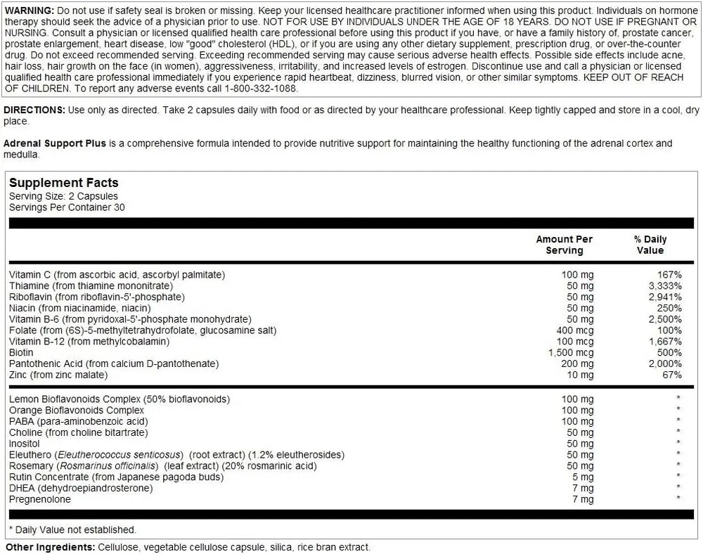 APOYO SUPRARRENAL COMPLETO: Adrenal Support Plus está diseñado para ayudar a mantener una función nerviosa saludable, promoviendo la resiliencia y el equilibrio en hombres y mujeres que enfrentan desafíos diarios.