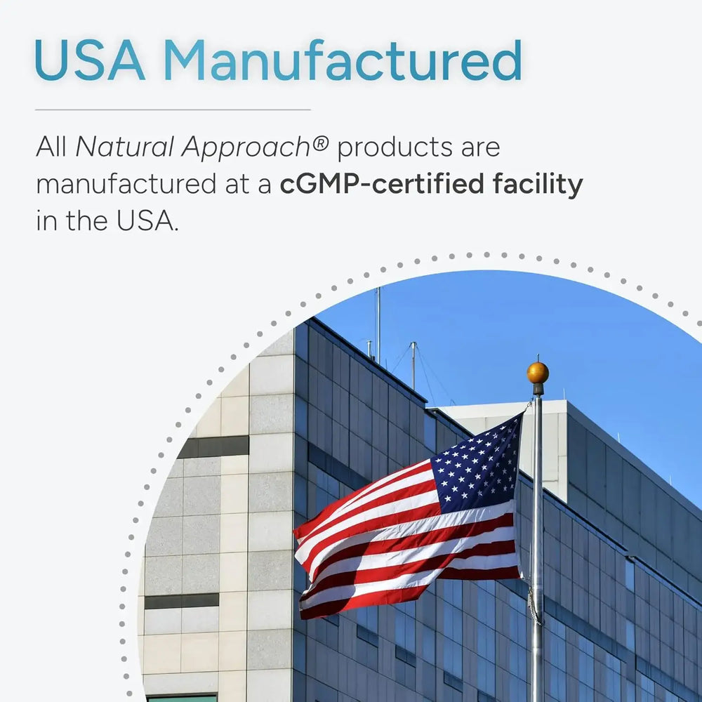 PROBADO POR TERCEROS: Ingredientes probados y de confianza. Todos los ingredientes de Natural Approach se someten a pruebas de calidad y pureza por parte de terceros antes y después del proceso de fabricación para garantizar la máxima eficacia y seguridad. Fabricado en instalaciones con certificación cGMP en EE. UU.