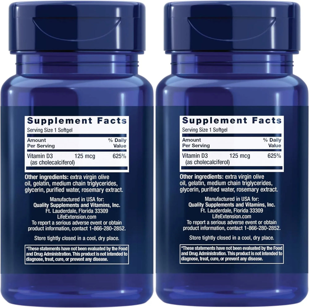 Life Extension Vitamin D3 125mcg 60 Capsulas Blandas 2 Pack