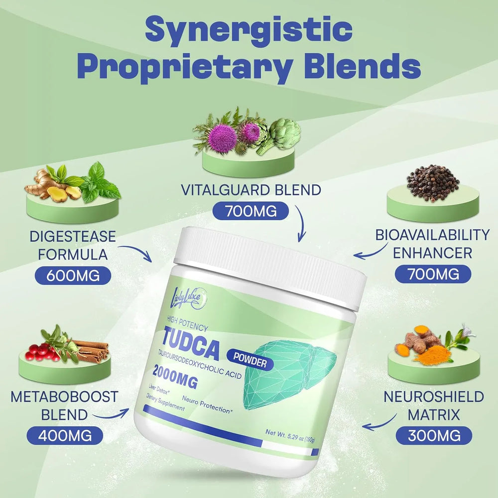 Máxima potencia para la salud hepática: Cada porción aporta 2000 mg de TUDCA, un potente suplemento para la salud hepática que favorece la limpieza, desintoxicación y reparación del hígado. Este suplemento de TUDCA promueve la función y el bienestar hepáticos, lo que lo convierte en una opción confiable para el apoyo diario.