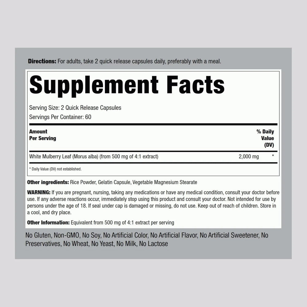Piping Rock Mulberry Leaf Extract 2000Mg. 120 Capsulas