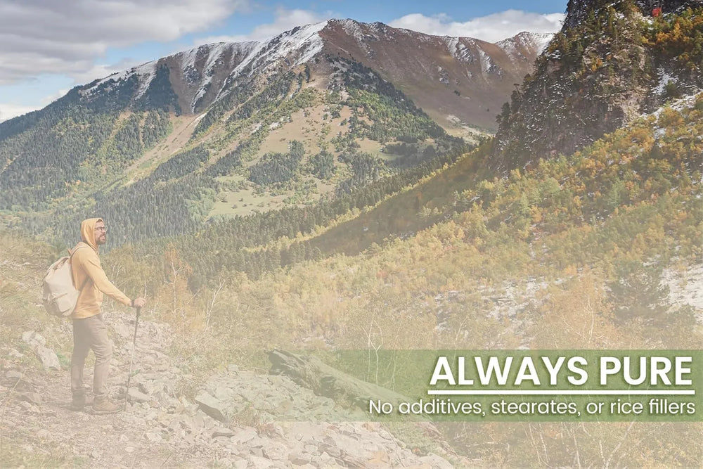 • Siempre puro: Sin aditivos, estearatos ni rellenos de arroz. Envasado en Utah, EE. UU.