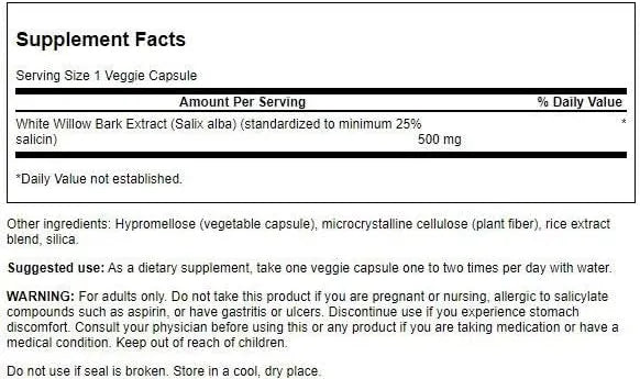 Swanson Maximum Strength White Willow Bark Extract 500Mg. 60 Capsulas