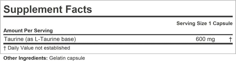INGREDIENTES BIOACTIVOS puros SUPERIORES: proporciona 600 mg de taurina. NO contiene leche/sin lácteos, sin gluten; SIN soja, levadura, maíz, trigo, sodio, sal, azúcar, grasa, colesterol, colorantes, conservantes ni aditivos de fabricación.