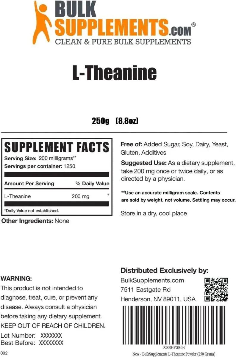 Bulksupplements L-Theanine Powder 1250 Servicios 250Gr.