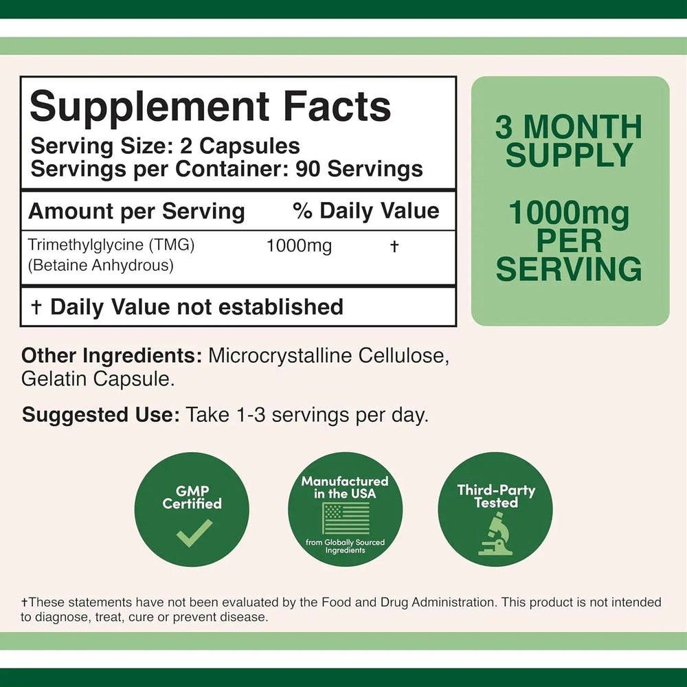 Suplementos de TMG para reducir la homocisteína: múltiples estudios muestran que la suplementación con TMG (trimetilglicina) en dosis de 3000 mg puede reducir los niveles de homocisteína hasta en un 40 %.